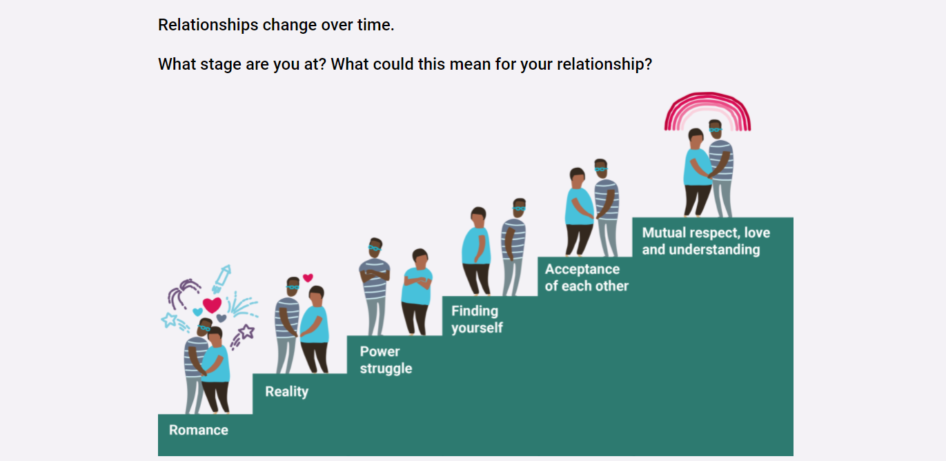 Long-term relationships tend to go through lots of stages and changes. It's different for everyone and your journey will be affected by the changes in your lives.