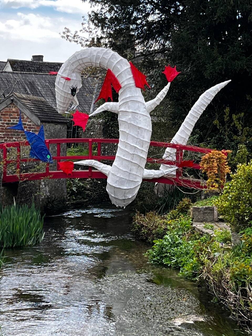The ‘Otter Serpent’ in Dragon Form was created and installed by Sasha Constable and champions our need to nurture the precious water that flows through our habitat and village. This Cape Farewell commission invites us to think imaginatively about how to address and transform the environmental crisis that humans have caused, and to find ways to turn the tide.